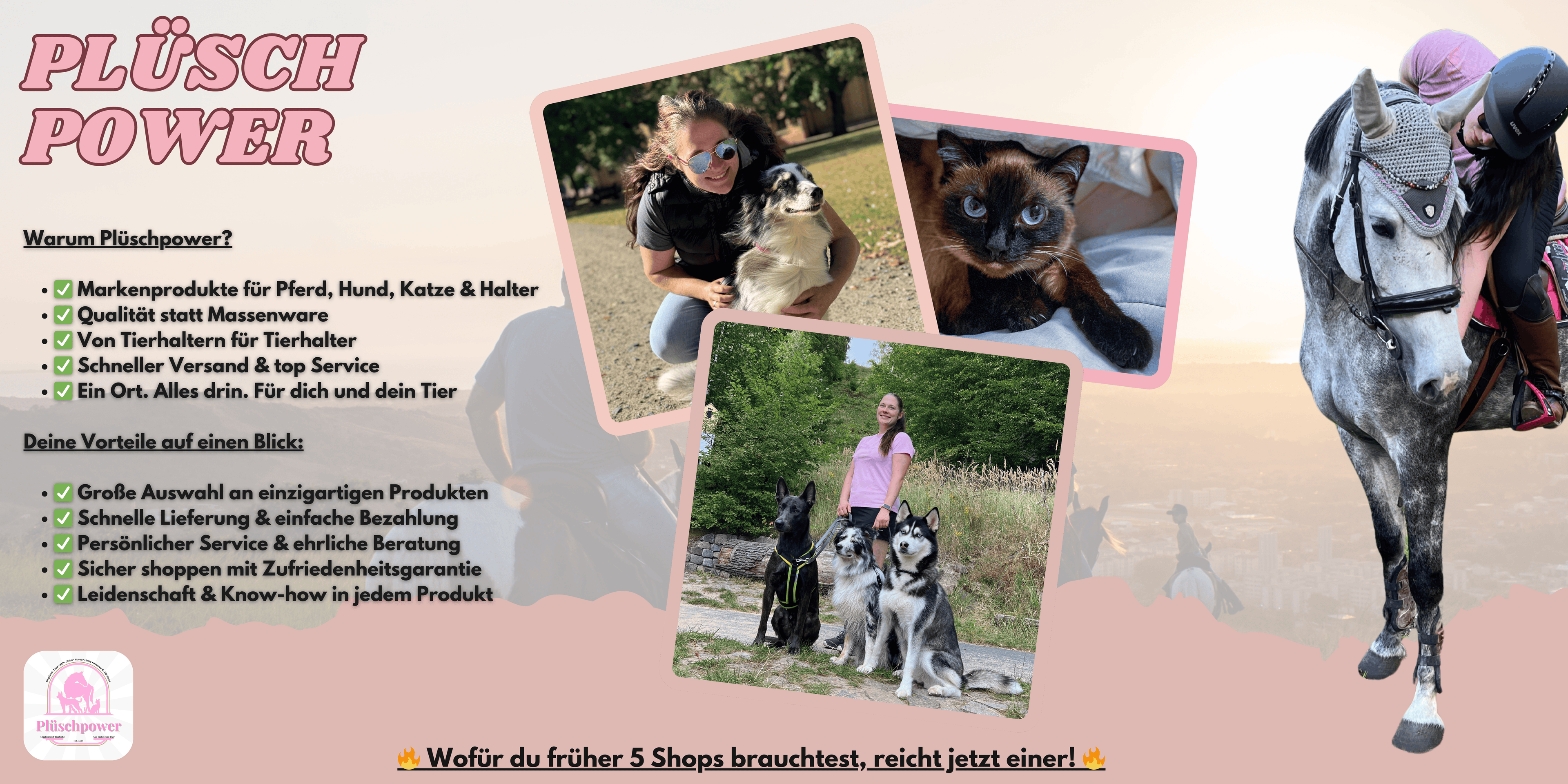 Bei Plüschpower findest du alles, was das Herz deines Lieblings höher schlagen lässt. Unser handverlesenes Sortiment an Zubehör und Pflegeprodukten vereint Komfort, Qualität und Freude - für glückliche Tiere und entspannte Besitzer.