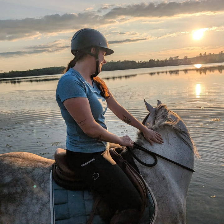 Dank des elastischen X-Designs und der verstellbaren Riemen sitzt die Weste angenehm körpernah, ohne einzuengen – ganz gleich ob über Reitjacke oder Hoodie getragen.