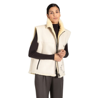 Diese haben eine besonders kuschelige und dichte Wolle. Außen ist die Lederseite mit einer besonderen Zurichtung veredelt und daher trotz der hellen Farbe wasser- und schmutzabweisend. Getragen wird die Weste oversized und bietet daher viel Bewegungsfreiheit. Die kontrastierenden Lederbänder und das aufgestickte Badge mit dem ICONIC LINE Logo verleihen der Unisex Weste einen coolen, urbanen Look. Sie hält kuschelig warm und ist der perfekte Begleiter für herbstliche Spaziergänge mit deinen Liebsten.