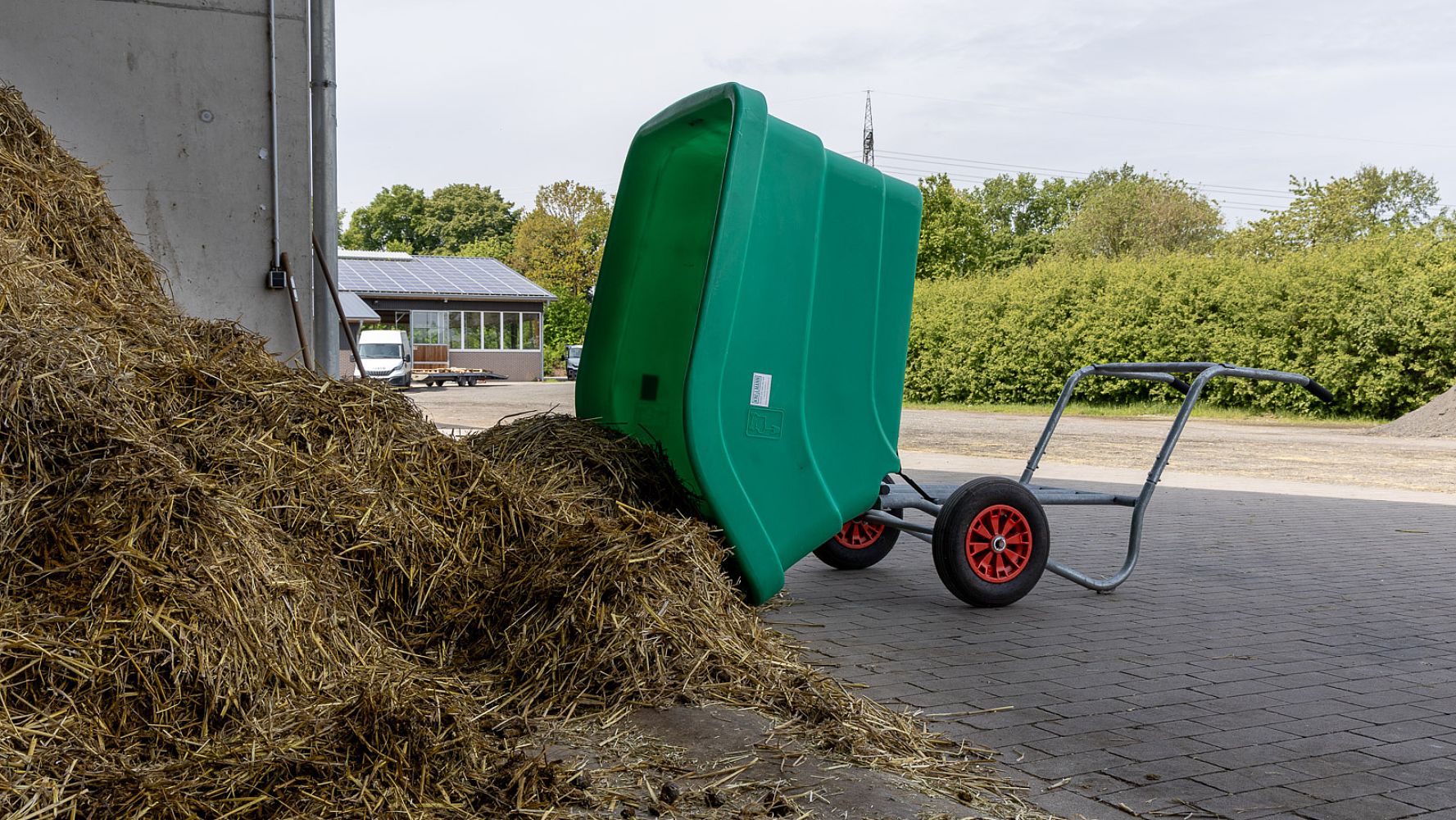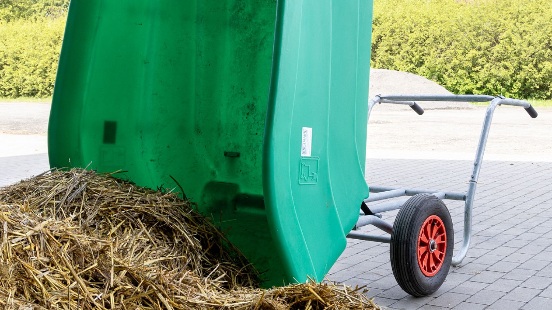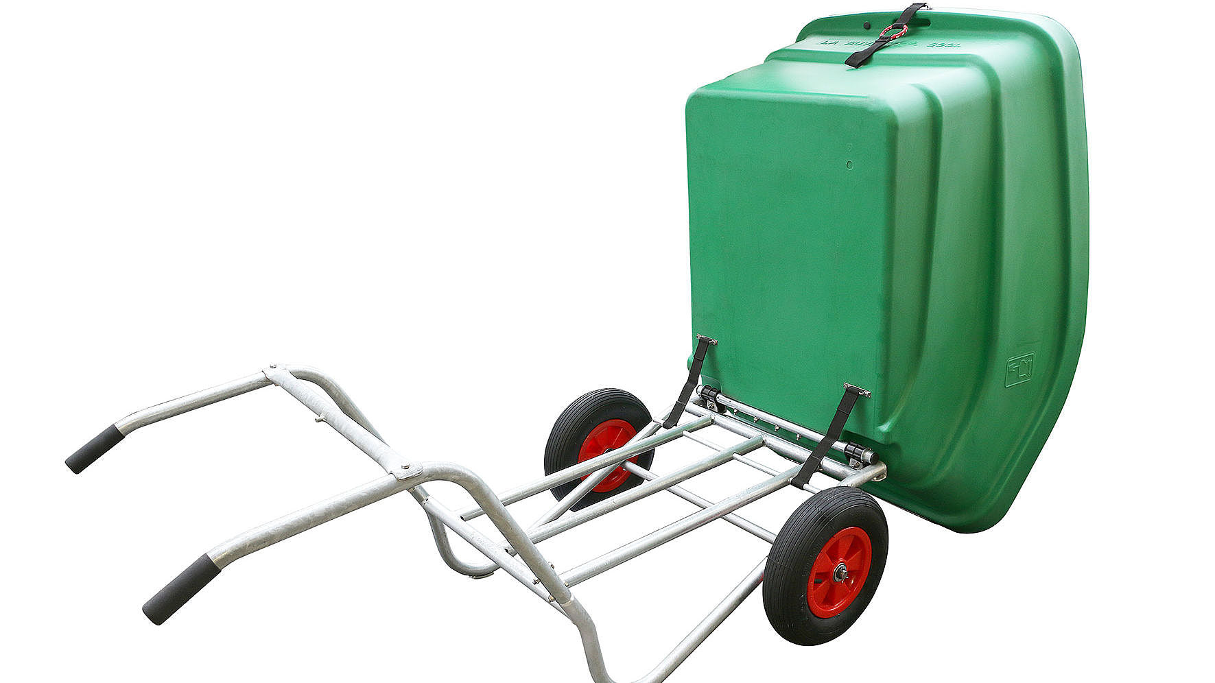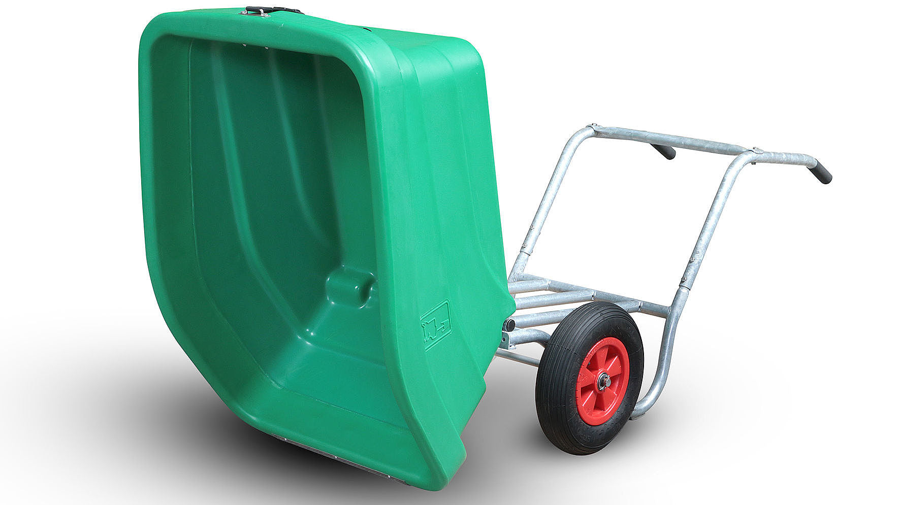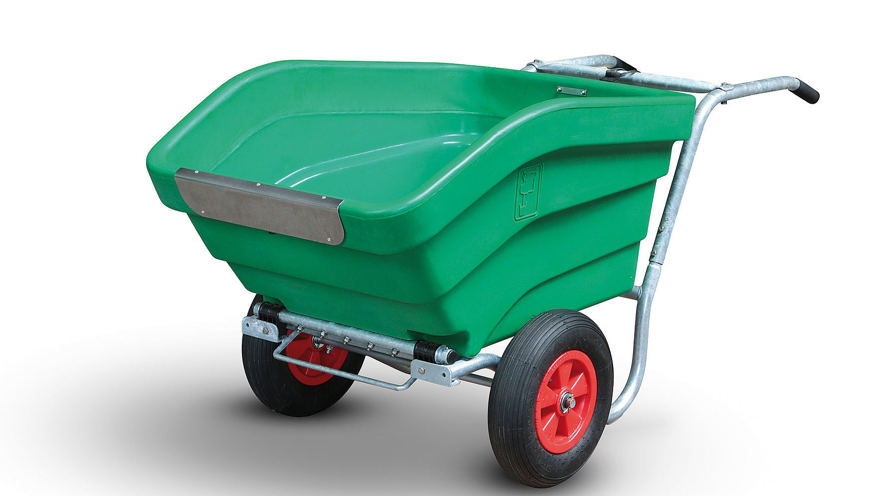 Sehr robust mit doppelwandigen geschweissten Rändern aus hochdichtem Polyehylen, mit Edelstahlschutzblech. Fester und stabiler Rahmen. Die Last ruht beim Fahren vollständig auf der Achse. Stabile Lufträder erleichtern das Lenken und Wenden. Durch den Doppelkippmechanismus leicht zu entleeren.