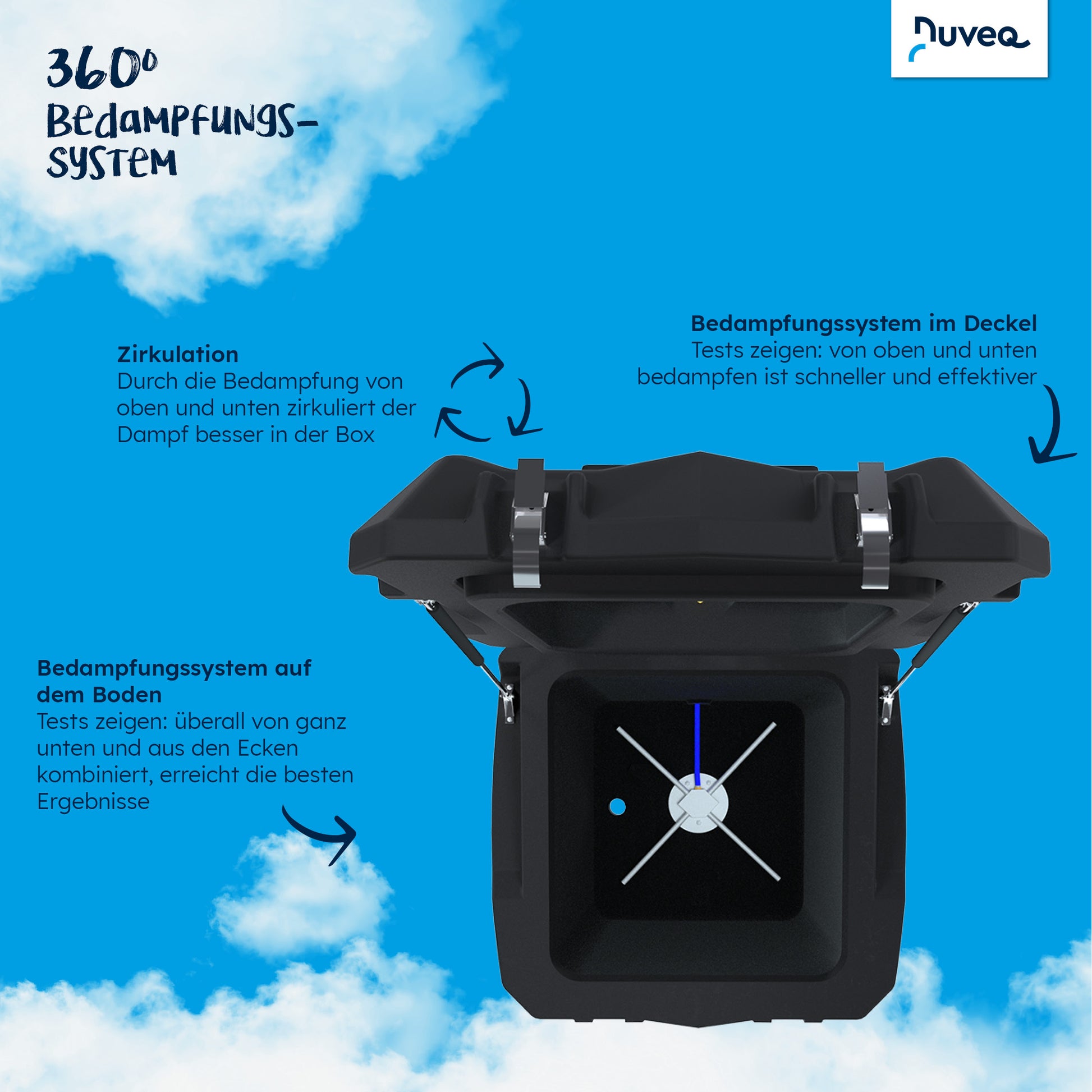 Der NUVEQ® Expert ECO Heubedampfer sorgt für eine optimale Heuhygiene und verbessert die Atemwegsgesundheit deines Pferdes. Mit modernster Dampf-Technologie entfernt er 99 % aller Bakterien, Sporen und lungengängigen Staubpartikel, um Atemwegserkrankungen effektiv vorzubeugen.